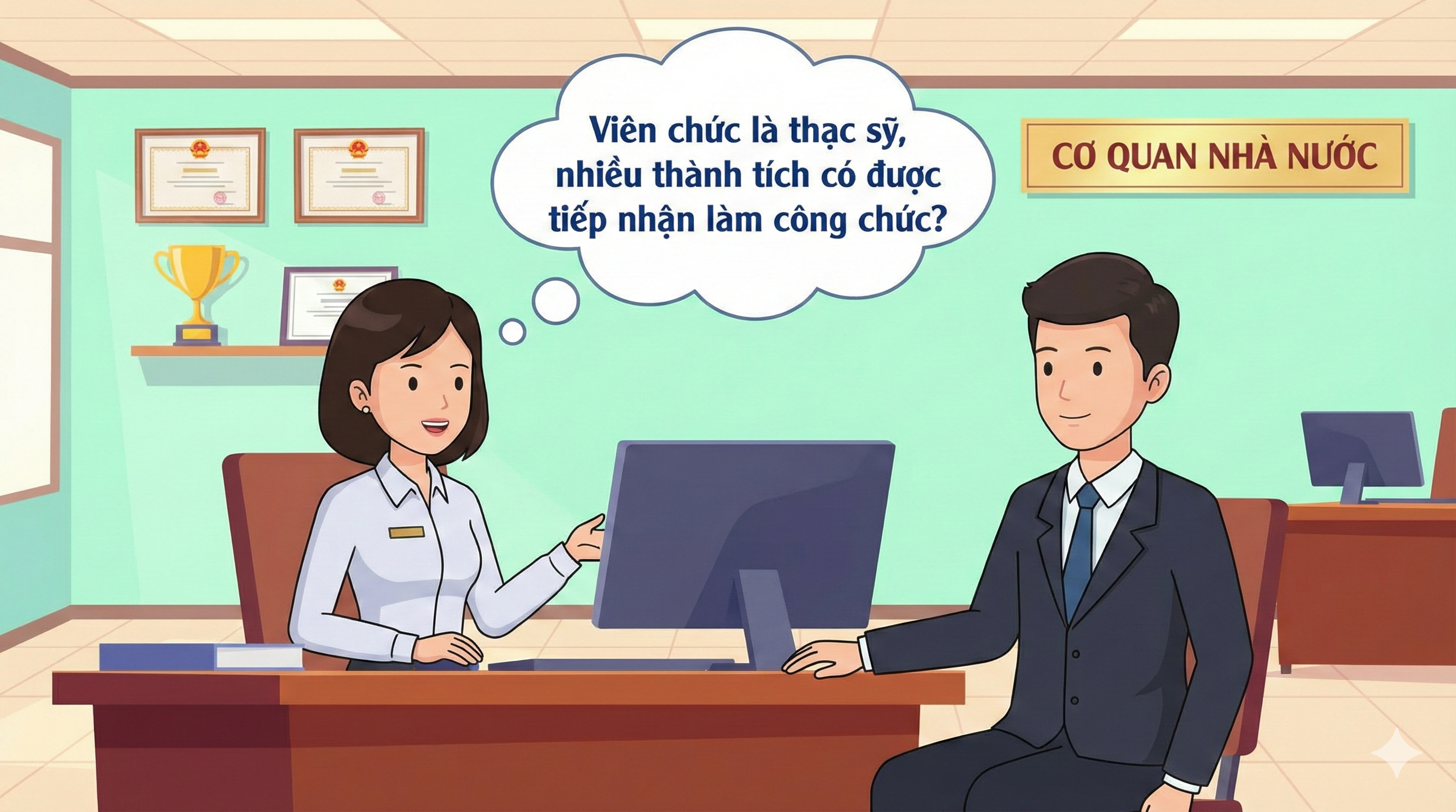 Viên chức là thạc sĩ và có nhiều thành tích hoàn toàn ĐỦ ĐIỀU KIỆN được tiếp nhận làm công chức nếu đã có tối thiểu 5 năm kinh nghiệm (không kể tập sự) và vị trí dự kiến tiếp nhận còn biên chế. Đây là chính sách nhằm "trải thảm đỏ" đón nhân tài, giúp tối ưu hóa nguồn lực cho bộ máy hành chính.